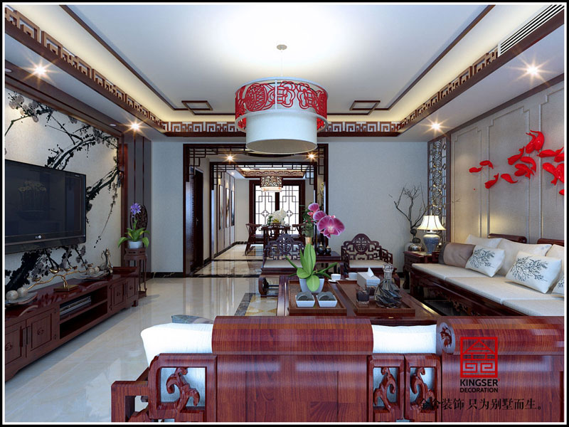 榮盛華府新中式風(fēng)格客廳裝修效果圖
