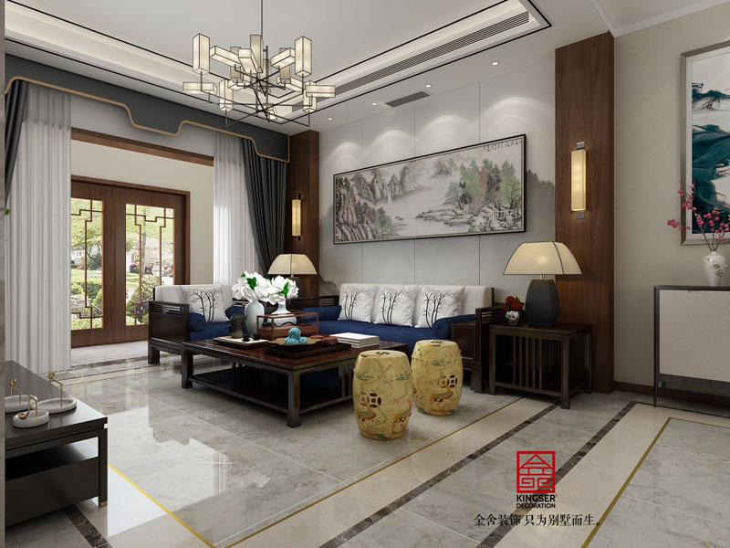 碧掛園別墅裝修新中式風(fēng)格效果圖-客廳