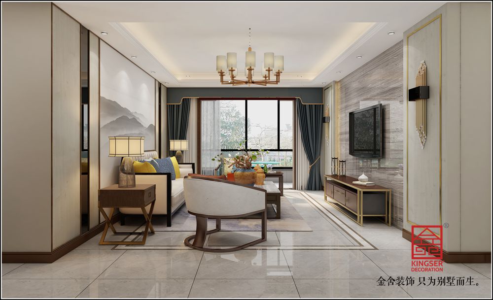 英格蘭景城139平米裝修-新中式-客廳