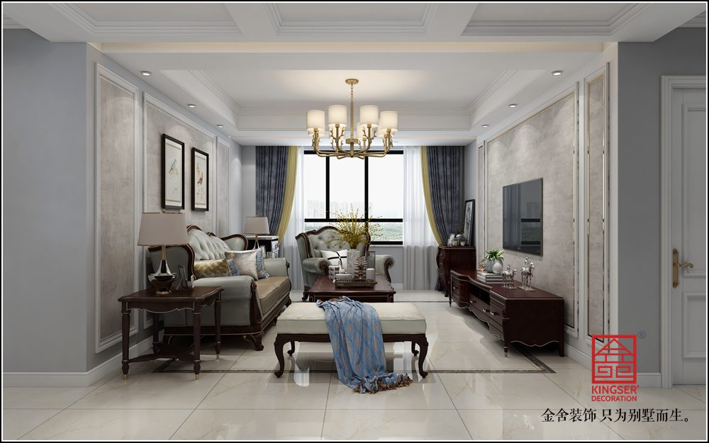 榮盛和府194平米美式風(fēng)格裝修-客廳
