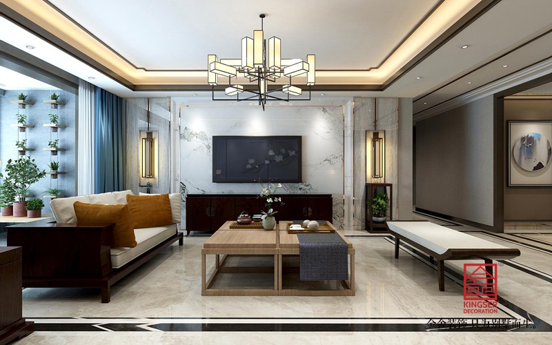 融創(chuàng)中心217平米裝修-中式風(fēng)格-客廳