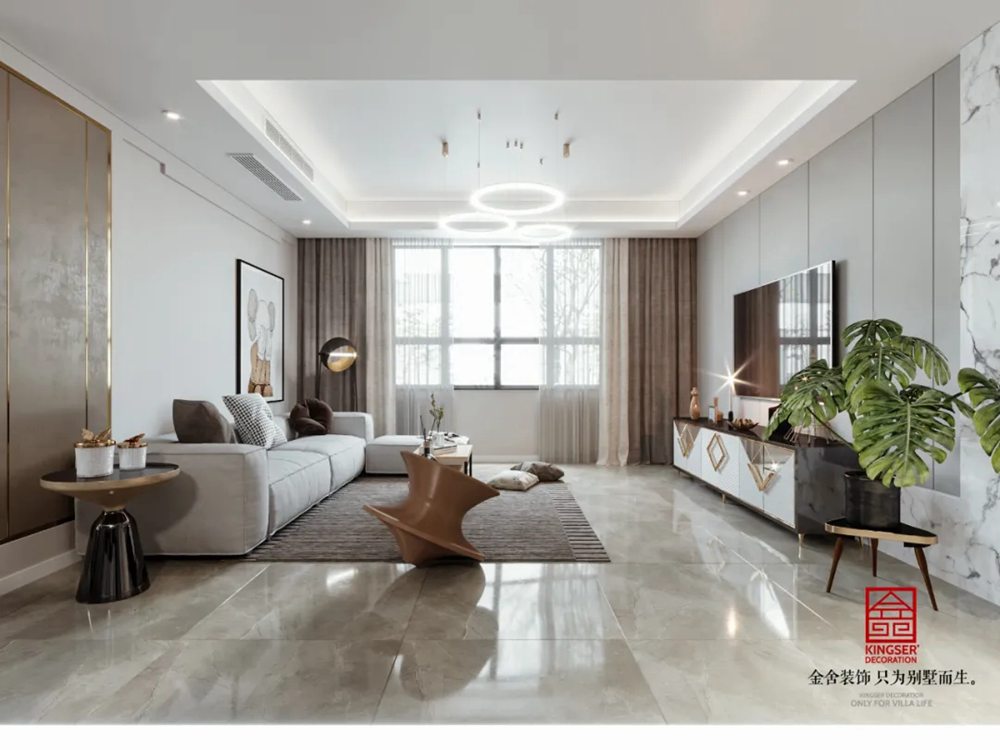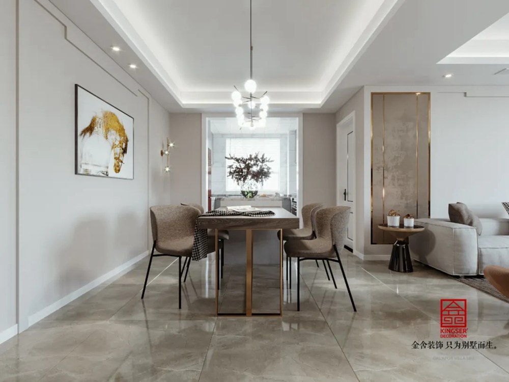 石家莊金舍裝飾-融創(chuàng)中心137平米輕奢風(fēng)格裝修案例賞析。生活原本就該屬于寧?kù)o,當(dāng)我們置身于繁華都市太久,自然會(huì)想要抽身剝離,去追尋內(nèi)心的閑適與平和。一個(gè)優(yōu)雅舒適的家,除了擁有優(yōu)質(zhì)的地理位置與人性化的社區(qū)管理以外,還需要精致的軟裝設(shè)計(jì)來(lái)裝點(diǎn)生活。輕奢是一種高格調(diào)的生活態(tài)度,正是年輕人所需要的生活品質(zhì),輕奢生活,精致到老,對(duì)于現(xiàn)代人,尤其是當(dāng)下的年輕人們而言,切實(shí)給了人們心靈的觸動(dòng)。