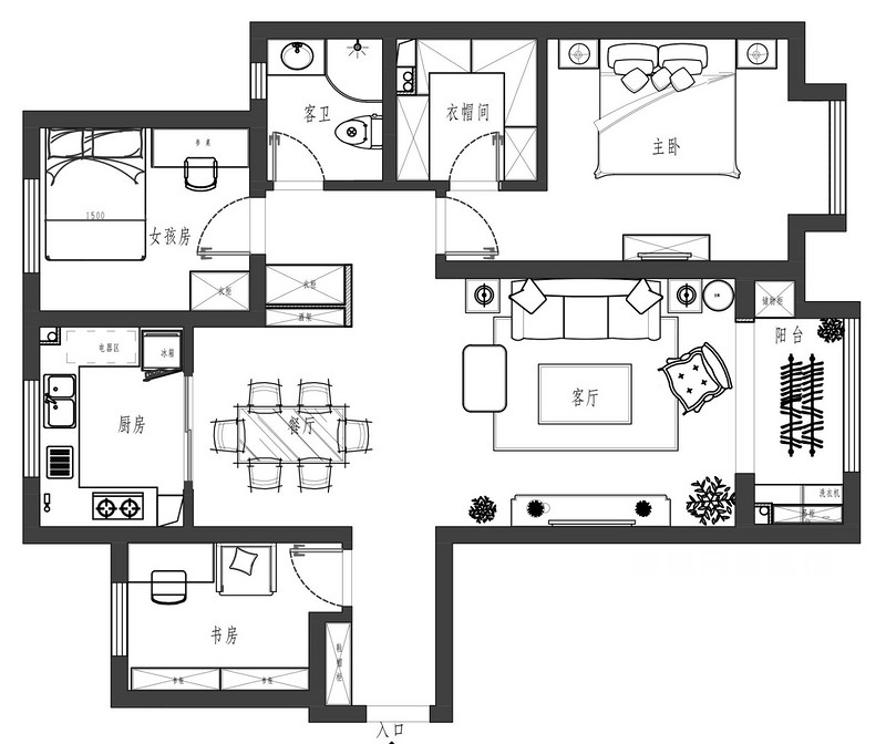 此戶型方正,南北通透,通風(fēng)采光比較好,空間分隔合理,廚房門口擴大,使利用空間更大,更好的增加通風(fēng)和采光,主臥的飄窗拆除,使主臥空間變大,顯得不是很擁擠,給人一個舒適的居住空間,采用用本公司香草天空的衣柜,使整個空間更加美觀,從而也增加了室內(nèi)的儲物空間,也使室內(nèi)更加干凈整潔。