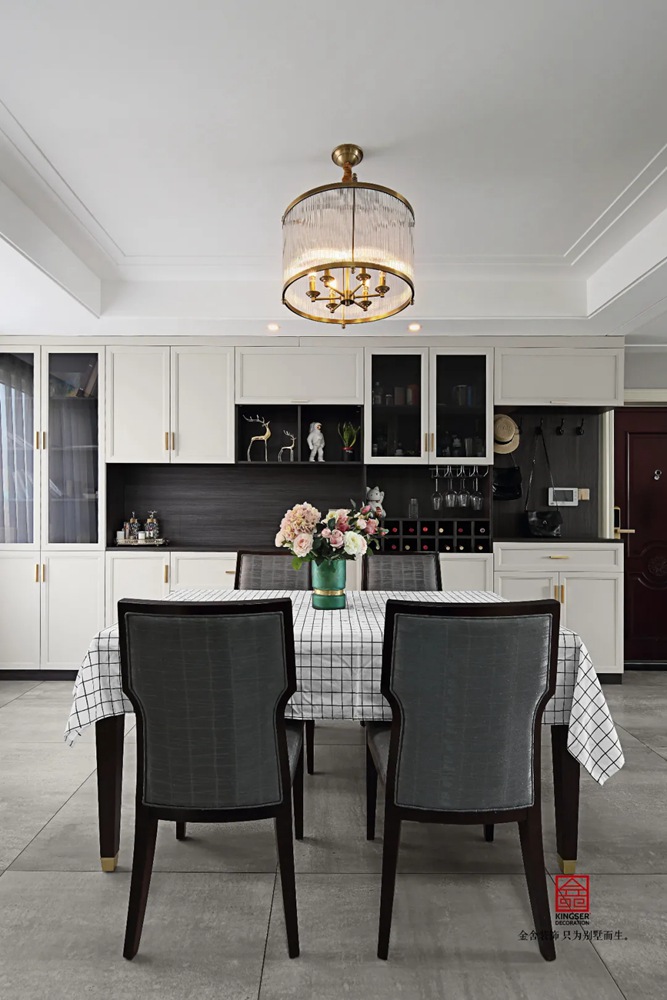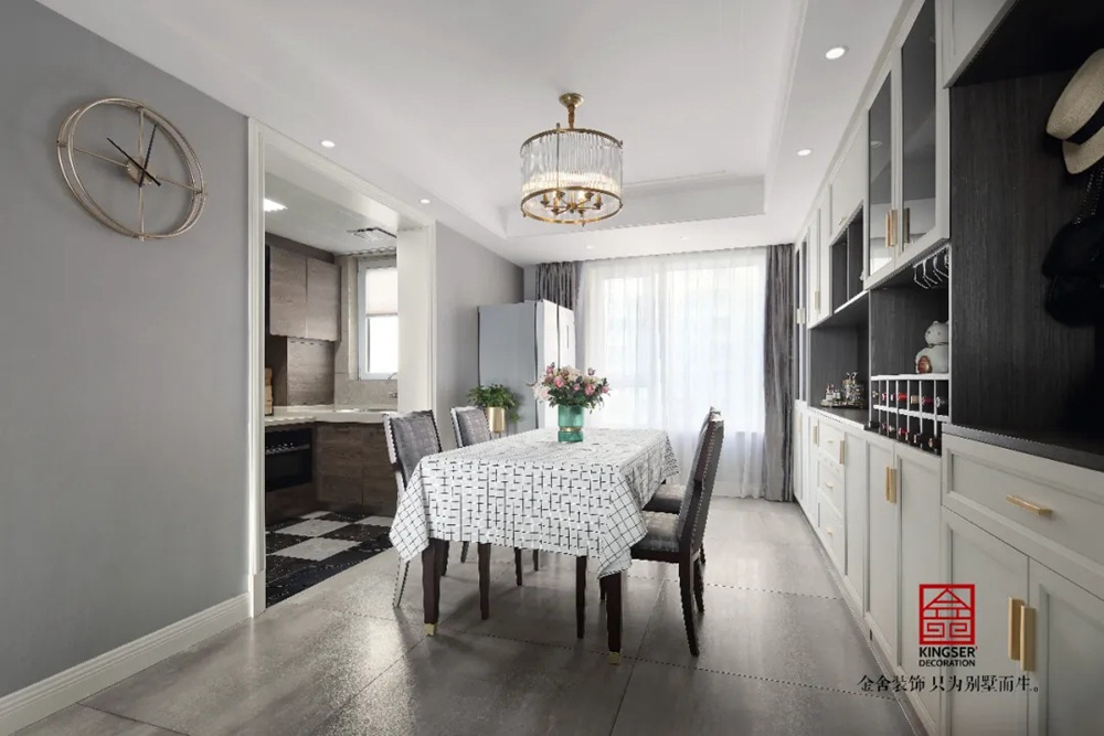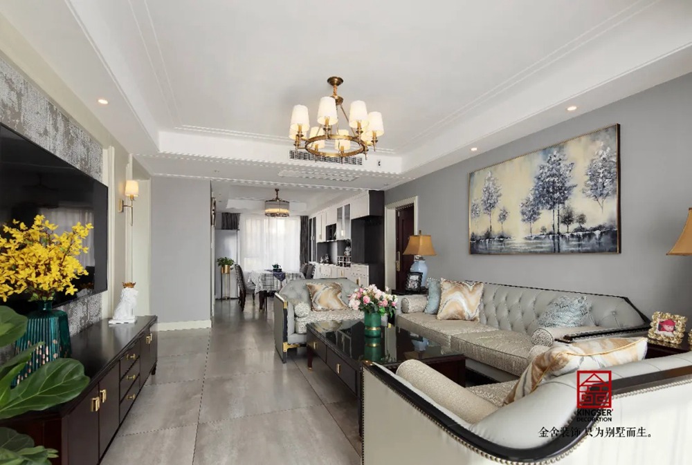 整體空間強(qiáng)調(diào)簡潔、明晰的線條和優(yōu)雅、得體有度的裝飾??蛷d的效果代表了一種自在、隨意不羈的生活方式,這些元素也正好體現(xiàn)了一種對生活方式的需求。