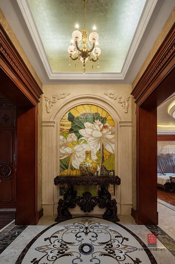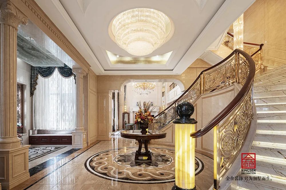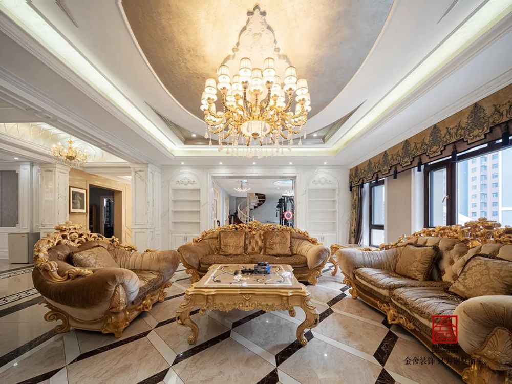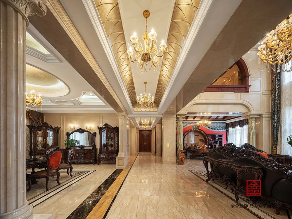 此案例為石家莊金舍裝飾-無(wú)極御瓏華府2400平米別墅歐式風(fēng)格裝修實(shí)景。御瓏華府“中西合璧”這是一套集“土建+硬裝+軟裝+庭院”一體的全案設(shè)計(jì),占地東西70米,南北50米,整個(gè)結(jié)構(gòu)坐落于小區(qū)的核心位置,打開家門,先是私有的庭院生活,再而迎面就是小區(qū)的綠化水系,視野開闊,一覽全景。方案設(shè)計(jì)為“中西合璧”風(fēng)。浪漫的歐式古典風(fēng)融入東方設(shè)計(jì)元素,嶄新的文化底蘊(yùn)得以傳承,既有歐式的富貴典雅又有中式的文化底蘊(yùn),二者巧妙應(yīng)用,提升整個(gè)空間氣質(zhì)。