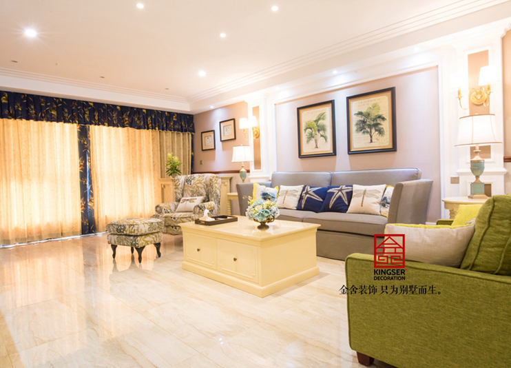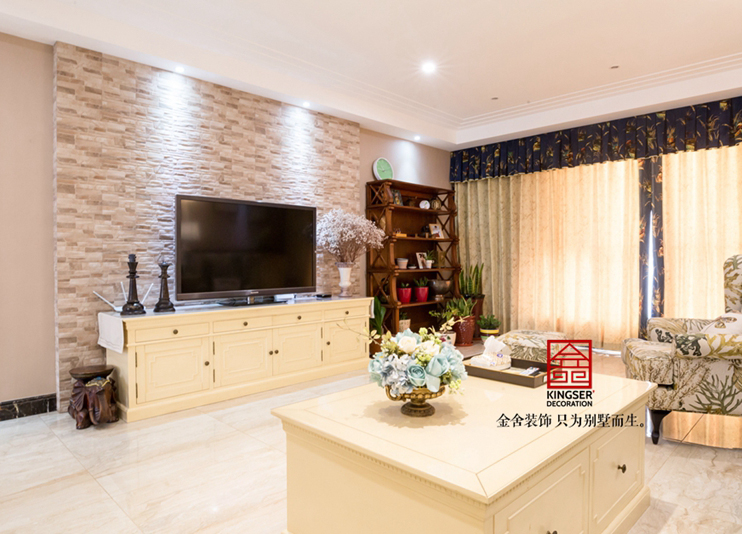 設(shè)計(jì)說明:此實(shí)景案例為河北別墅裝修裝飾-天海譽(yù)天下217平米簡約美式裝修實(shí)景??臻g是為人創(chuàng)造的,所以人是空間的主體,而不是空間的載體。正是因?yàn)橛泻芏嗳舜嬖?,所以才有情感存在。空間是有情感的,但也需要有品味。