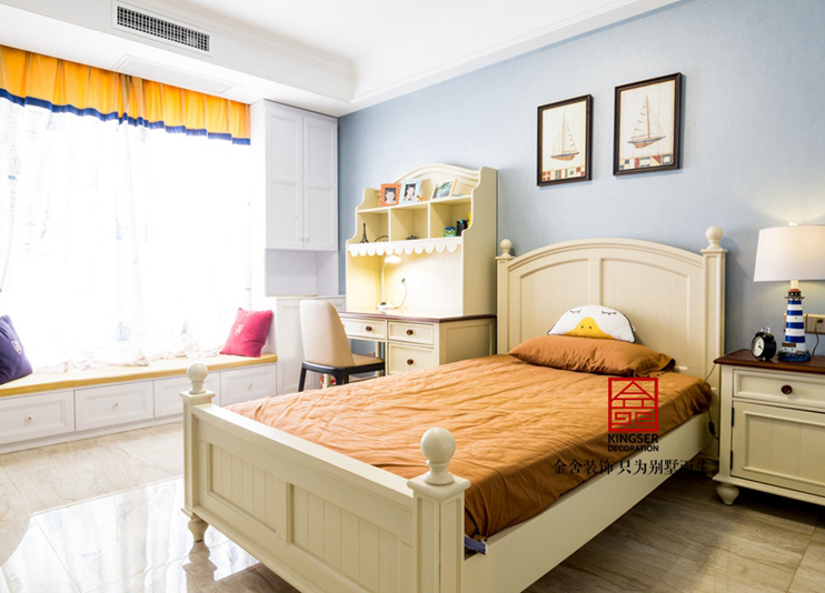 寬敞的主臥空間,樸素的壁紙,金色的窗簾,伴隨著溫暖的陽光,帶來和諧的效果。有時(shí)清澈典雅,有時(shí)溫柔宜人。夏天的家有這種優(yōu)雅的氣息,臥室的角落都說明了美國家的自由。