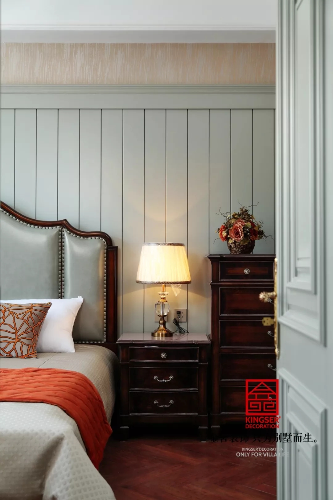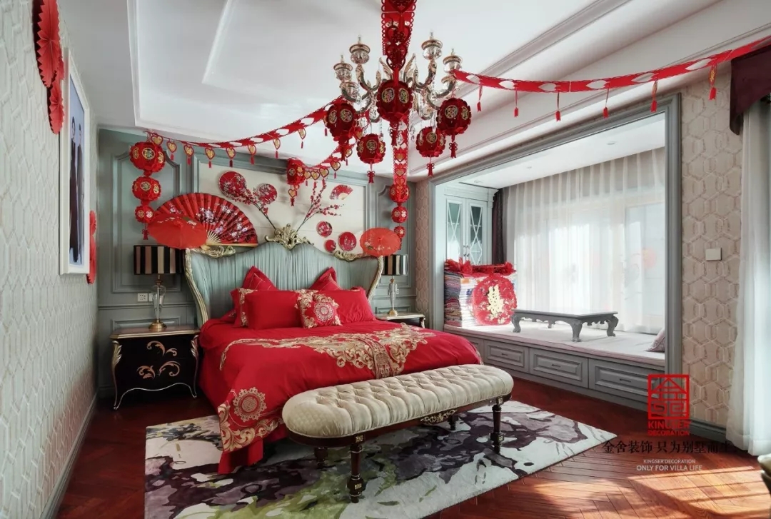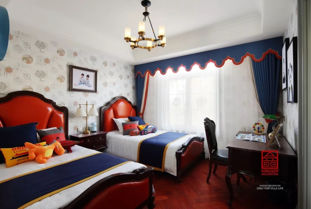 臥室“靜”與“凈”都藏在每一個元素里。內(nèi)蘊悠遠(yuǎn),優(yōu)雅從容,相伴入眠,讓夢境都變得詩意起來。臥室在配色上沒有考慮中式的傳統(tǒng)配色,而是用的紅色與藍(lán)色的配合,讓對比色擺脫傳統(tǒng)的中式氛圍,讓中式的感覺發(fā)生一個質(zhì)的飛躍,讓時尚感充滿整個空間。