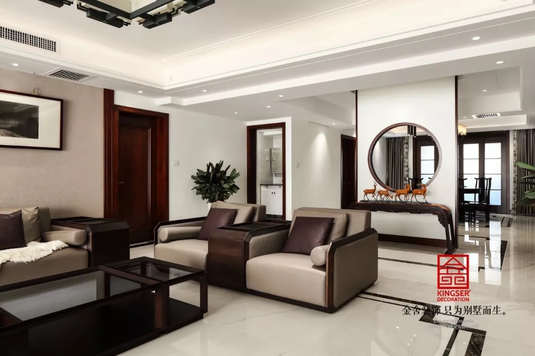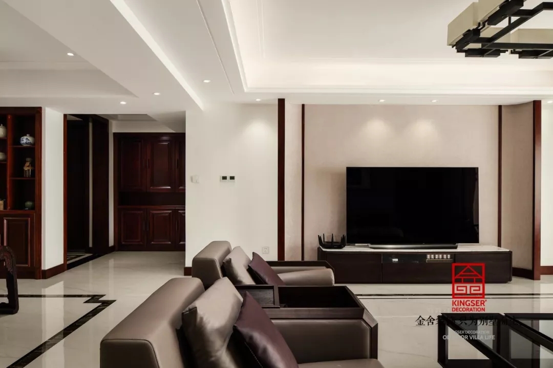 本案例為石家莊金舍裝飾-正定小區(qū)206平米中式風(fēng)格裝修實(shí)景。定位新中式風(fēng)格,客戶要求簡(jiǎn)單、時(shí)尚,輕裝修重裝飾,體現(xiàn)現(xiàn)代人的生活模式的同時(shí)可以蘊(yùn)含中國(guó)東方儒雅氣度。在家具形態(tài)上更加簡(jiǎn)潔清秀,空間配色上也更為輕松自然。