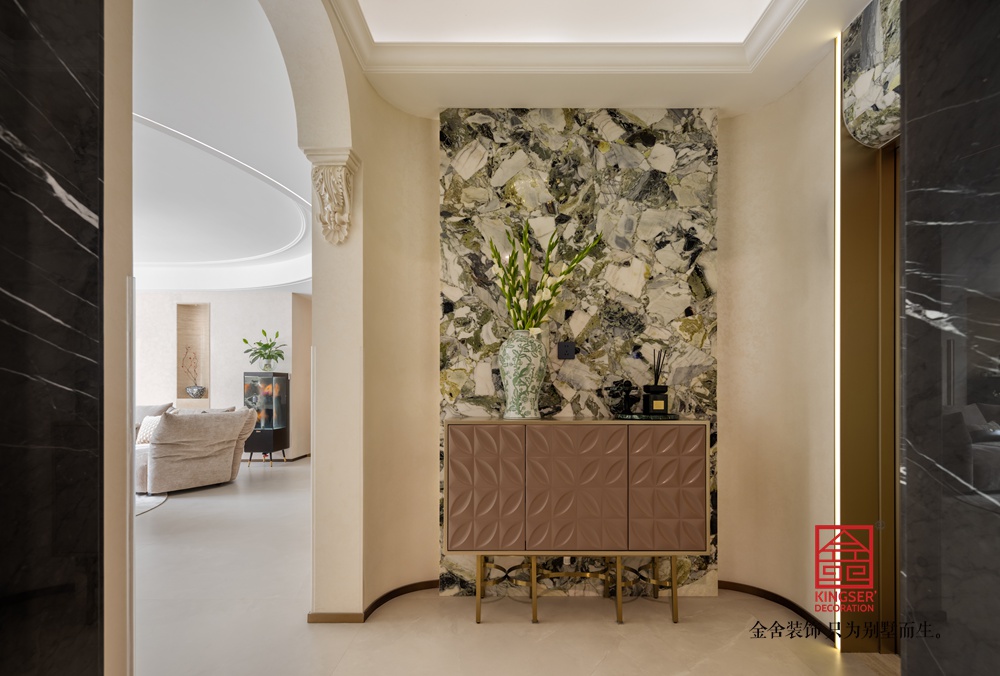 空間的每處設(shè)計(jì)細(xì)節(jié)皆源自自然草木的呼吸,每一寸材質(zhì)肌理皆訴說城市生活的故事。在這里,自然不再是背景,而是空間的主角;奢華不再是堆砌,而是與人文共鳴的詩意棲居。