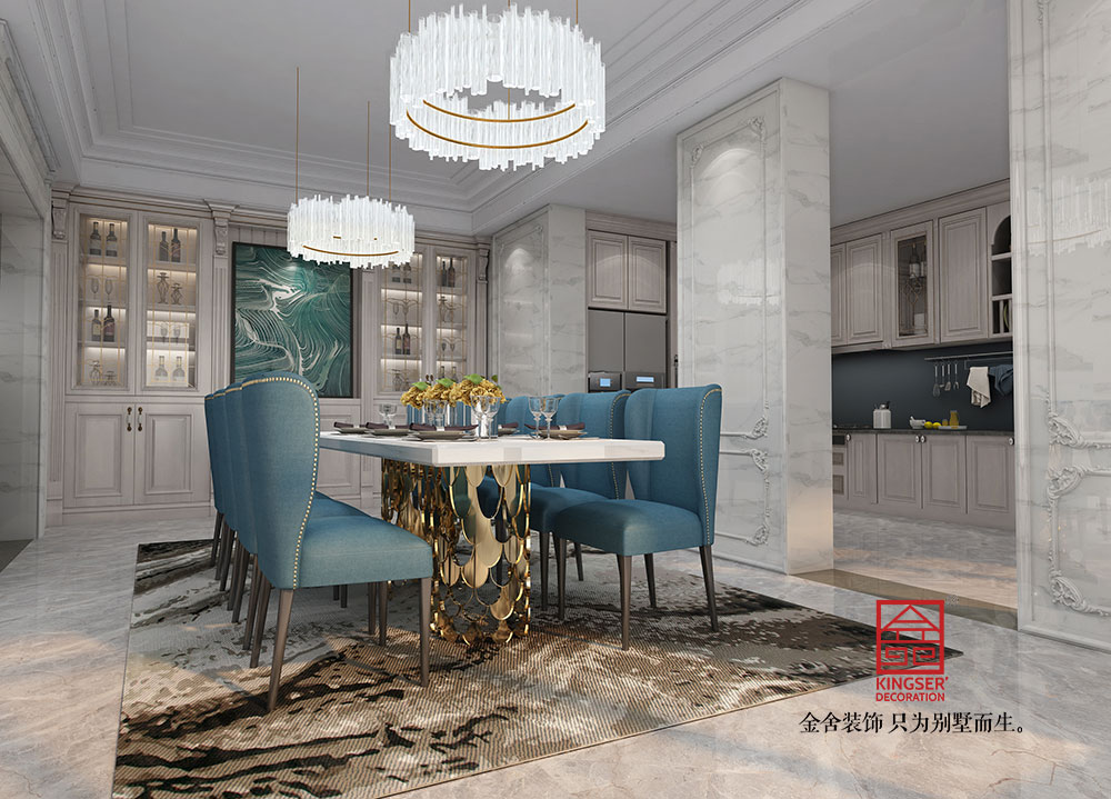 設(shè)計(jì)說(shuō)明:此案例為石家莊金舍裝飾-西山御園700平米歐式風(fēng)格裝修效果圖。本次設(shè)計(jì)在空間上徹底打破了原始的格局規(guī)劃,重新在表現(xiàn)形式上推陳出新;拋棄了原先以墻面裝飾為主的傳統(tǒng)設(shè)計(jì)手法,反而從結(jié)構(gòu)本身出發(fā),大膽采用“無(wú)框設(shè)計(jì)”和“重點(diǎn)設(shè)計(jì)”,利用不同材質(zhì)的搭配營(yíng)造出一種浪漫的、高貴的、典雅的家居空間。