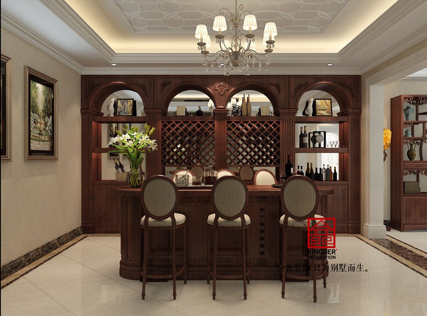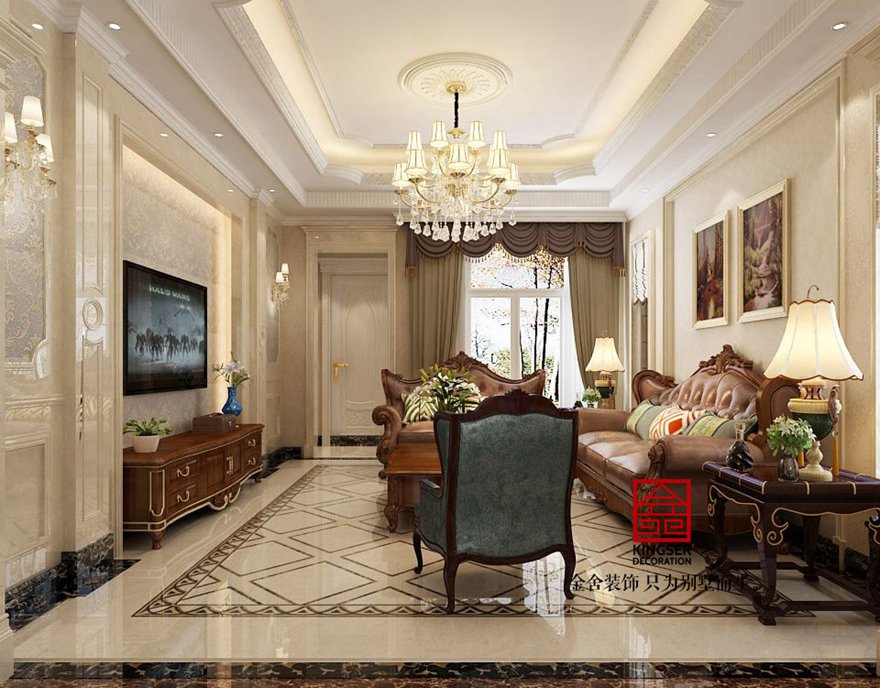設(shè)計說明:此案例為石家莊金舍裝飾-原河名墅400平米歐式風(fēng)格裝修效果圖。沒有純歐式的繁亂,客廳與臥室的對比繁簡統(tǒng)一,讓人心情平靜。椅子藍(lán)色皮質(zhì)與臥室藍(lán)色布藝相輝映,使之更為整體。束花裝飾點綴及綠植擺設(shè)使整個空間更加清新田園。田園氣息讓人在忙碌的都市多了份愜意和滿足。金屬材質(zhì)以及水晶吊燈讓整個空間更為時尚、大氣。真正做到了大氣而又內(nèi)容。