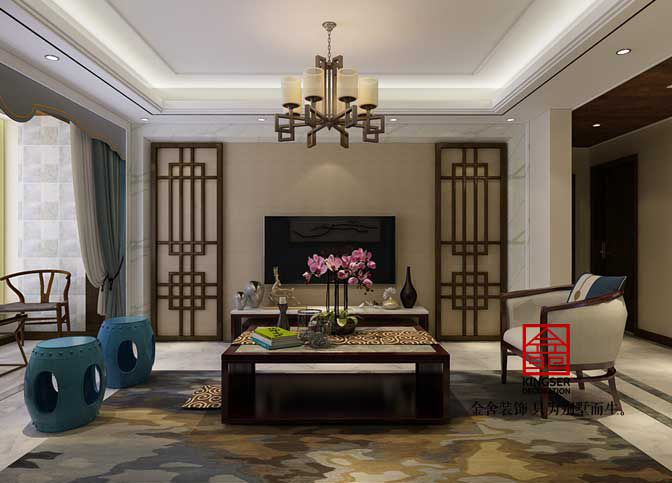 在室內(nèi)裝飾設(shè)計(jì)搭配上,以沉穩(wěn)的深色調(diào)為主搭配藍(lán)色紅色等亮色形成對(duì)比,表達(dá)對(duì)清雅含蓄、端莊豐華的東方式精神境界的追求。