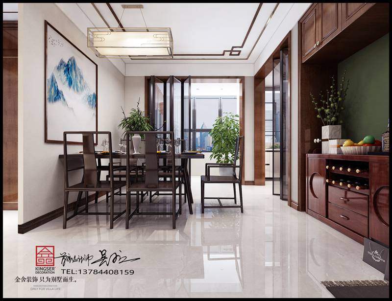 本方案為石家莊金舍裝飾-榮盛華府178平米新中式風(fēng)格裝修效果圖。風(fēng)格為新中式,倦鳥歸林,魚翔淺底,落葉歸根,這都是對