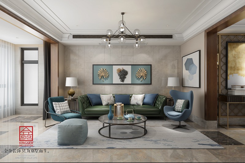 石家莊金舍裝飾-德賢公館160平米現(xiàn)代風(fēng)格裝修效果圖。是圍繞現(xiàn)代為主題,再加上美式的設(shè)計(jì)元素在里面。相互結(jié)合,相交融。以簡(jiǎn)潔明快的設(shè)計(jì)風(fēng)格為主調(diào),簡(jiǎn)潔和實(shí)用是現(xiàn)代簡(jiǎn)約風(fēng)格的基本特點(diǎn)。簡(jiǎn)約風(fēng)格已經(jīng)大行其道幾年了,仍然保持很猛的勢(shì)頭,這是因?yàn)槿藗冄b修時(shí)總希望在經(jīng)濟(jì)、實(shí)用、舒適的同時(shí),體現(xiàn)一定的文化品味。而簡(jiǎn)約風(fēng)格不僅注重居室的實(shí)用性,而且還體現(xiàn)出了現(xiàn)代社會(huì)生活的精致與個(gè)性,符合現(xiàn)代人的生活品位。全面考慮,在總體布局上方面盡量滿(mǎn)足業(yè)主生活的需求,客廳的現(xiàn)代簡(jiǎn)約和臥室的美式溫馨相結(jié)合,融會(huì)貫通。更體現(xiàn)現(xiàn)代簡(jiǎn)約之感。創(chuàng)造一個(gè)溫馨,健康的家庭環(huán)境。