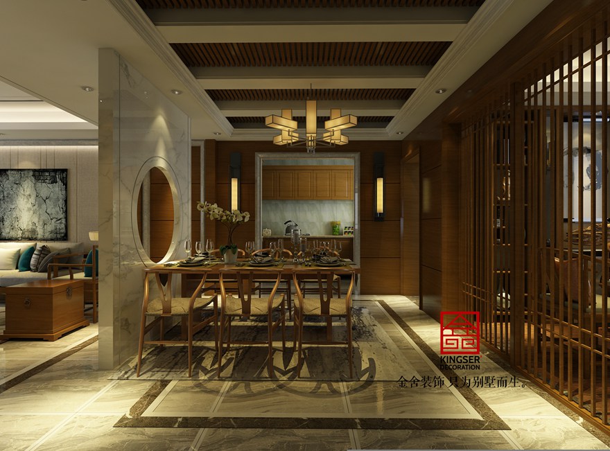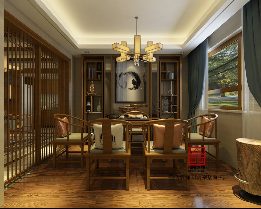 設(shè)計說明:此案例為石家莊金舍裝飾-御河上院255平米中式裝修效果圖。中式古典風(fēng)格主要特征,是以木材為主要建材,充分發(fā)揮木材的物理性能,創(chuàng)造出獨(dú)特的木結(jié)構(gòu)或穿斗式結(jié)構(gòu),講究構(gòu)架制的原則,建筑構(gòu)件規(guī)格化,重視橫向布局,利用庭院組織空間,用裝修構(gòu)件分合空間,注重環(huán)境與建筑的協(xié)調(diào),善于用環(huán)境創(chuàng)造氣氛。運(yùn)用色彩裝飾手段,如彩畫、雕刻、書法和工藝美術(shù)、家具陳設(shè)等藝術(shù)手段來營造意境。
