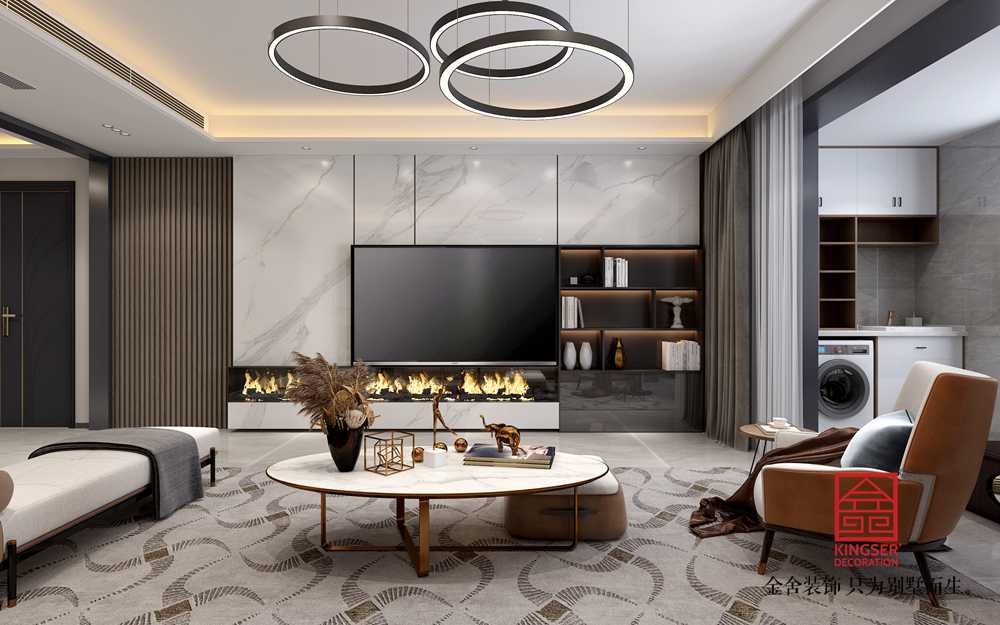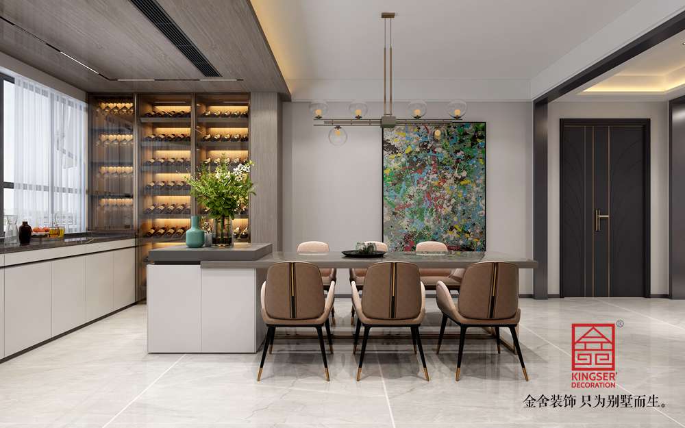 在空間上,盡量放空、開放式廚房、陽臺、琴房,讓公共部分動線流暢、寬敞 、舒適。