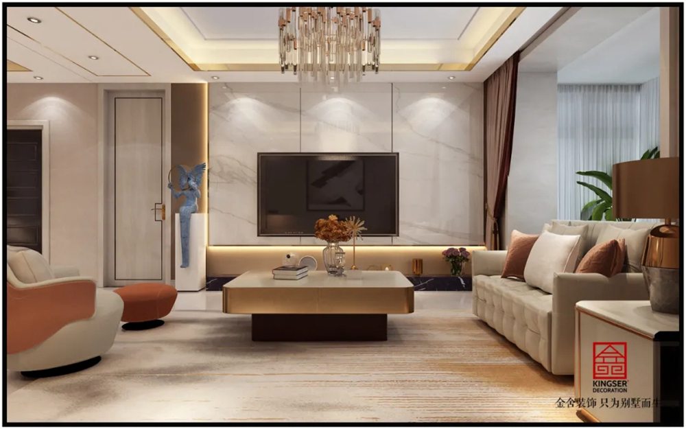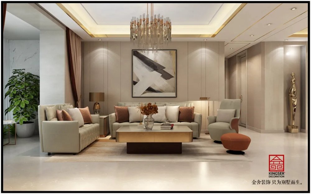 此案例為石家莊金舍裝飾-瀚林甲第166平米輕奢風格裝修案例。一縷和煦的陽光,照亮你的家。木色與大理石,不僅能襯托陽光的溫暖,在視覺上還有較強的延展性,相同色系的墻壁將整個家居空間合為一個統(tǒng)一整體,帶給居住者不一樣的視覺享受。