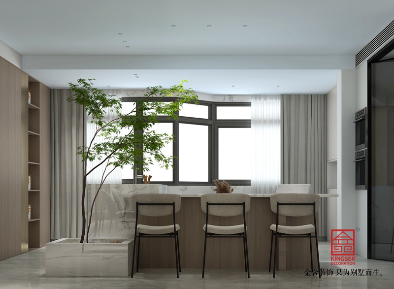 此案例為石家莊金舍裝飾-榮盛華府205平米現(xiàn)代風(fēng)格裝修案例?,F(xiàn)代風(fēng)格外形簡(jiǎn)潔、功能強(qiáng),強(qiáng)調(diào)室內(nèi)空間形態(tài)和物件的單一性、抽象性。 現(xiàn)代簡(jiǎn)約風(fēng)格,顧名思義,就是讓所有的細(xì)節(jié)看上去都是非常簡(jiǎn)潔的。裝修中極簡(jiǎn)便是讓空間看上去非常簡(jiǎn)潔,大氣。裝飾的部位要少,但是在顏色和布局上,在裝修材料的選擇配搭上需要費(fèi)很大的勁,這是一種境界,不是普通設(shè)計(jì)師能夠設(shè)計(jì)出來(lái)的。