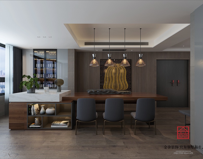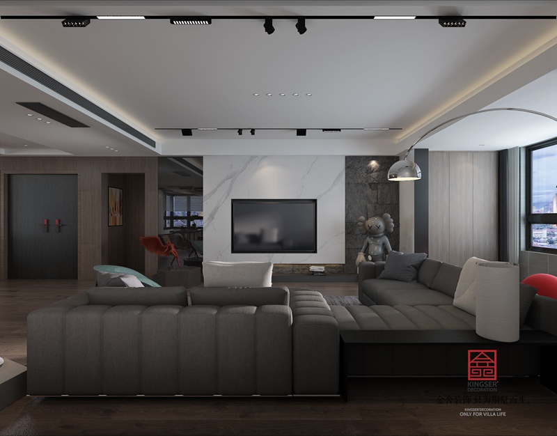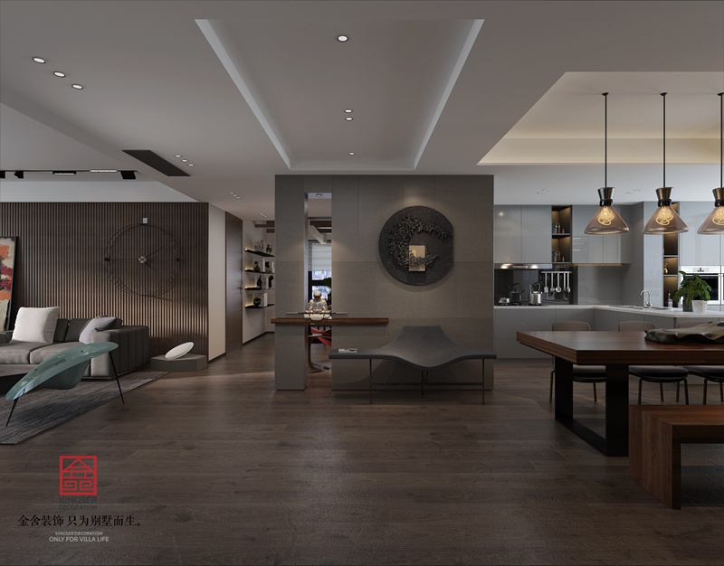 設計說明:此案例為石家莊金舍裝飾-榮盛華府190平米現(xiàn)代極簡風格裝修效果圖?,F(xiàn)代人面臨著城市的喧囂和污染,激烈的競爭壓力,還有忙碌的工作和緊張的生活。因而更加向往清新自然、隨意輕松的居室環(huán)境。越來越多的都市人開始摒棄繁縟豪華的裝修,力求擁有一種自然簡約的居室空間。少即是多,以寧缺勿濫為精髓,合理的簡化居室,從簡單舒適中體現(xiàn)生活的精致,體塊構(gòu)成把所有的內(nèi)容糅合在一起,又讓喧鬧中有了主線,有了寧靜,給人以心靈的休憩。