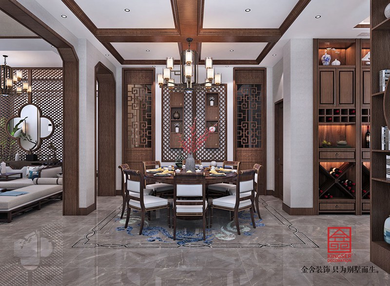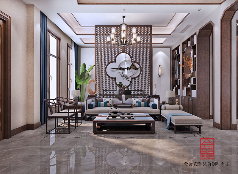 設計師倡導「詩性東方」獨特語境下的設計表達,圍繞“秀雅詩性”、“高貴平和”、“國際東方”三大議題鋪陳開來,探索東方哲思啟迪下材料和光影演繹的宜居實踐,以空間寫詩。分而不隔,互相滲透,增加了層次的虛實映襯和光影引入,使得庭院更符合人的日常生活尺度,家庭成員在這里相互交流,活動動線也更為舒展。