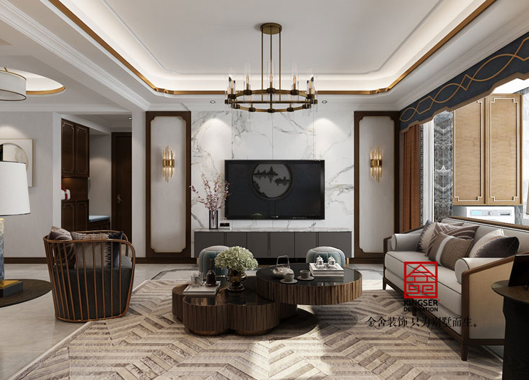 設(shè)計(jì)說(shuō)明:此案例為石家莊金舍裝飾-國(guó)賓壹號(hào)139平米新中式輕奢風(fēng)格。新中式輕奢風(fēng)格,既立足于傳統(tǒng),又巧妙地融合了現(xiàn)代特色。表達(dá)了人們對(duì)清雅含蓄的東方式精神境界的追求,且讓傳統(tǒng)藝術(shù)在現(xiàn)代生活中得以延續(xù)。該風(fēng)格不是單純的元素堆砌,而是通過(guò)簡(jiǎn)潔而不失質(zhì)感的設(shè)計(jì),讓傳統(tǒng)與現(xiàn)代元素和諧地融合在一起。整個(gè)空間既傳承了中式古風(fēng),又展現(xiàn)了一定的現(xiàn)代都市氣息。其造型線條變得更加干凈利落,色彩搭配素雅簡(jiǎn)淡,不再出現(xiàn)大面積高飽和度的濃烈色彩,只以少量亮色作為點(diǎn)綴;在材質(zhì)運(yùn)用上,新中式風(fēng)格除了以質(zhì)樸無(wú)華的實(shí)木為主之外,還大膽地采用金屬等現(xiàn)代材質(zhì)進(jìn)行混搭,在統(tǒng)一格調(diào)之余,又給予了新中式風(fēng)格奢華的魅力。新中式與輕奢風(fēng)的巧妙碰撞,為現(xiàn)代中式家居注入了一股時(shí)尚高雅的氣息。整體優(yōu)雅大氣、渾然一體,并利用陶瓷、字畫、茶器、盆栽等富有古典韻味的物件,來(lái)豐富整個(gè)空間層次,展現(xiàn)中國(guó)傳統(tǒng)藝術(shù)的永恒美感。