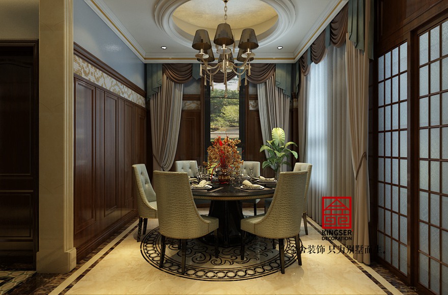 此案例為石家莊金舍裝飾-大者別墅400平米新古典風格裝修效果圖。新古典風格裝修從簡單到繁雜、從整體到局部,精雕細琢,鑲花刻金都給人一絲不茍的印象。一方面保留了材質(zhì)、色彩的大致風格,仍然可以很強烈地感受傳統(tǒng)的歷史痕跡與渾厚的文化底蘊,同時又摒棄了過于復(fù)雜的肌理和裝飾,簡化了線條。