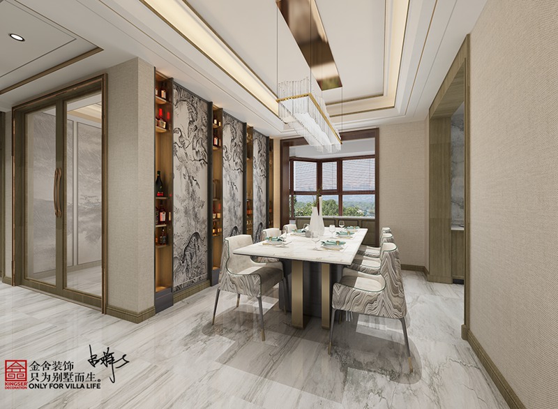 當(dāng)前位置: 首頁(yè) > 裝修案例 > 裝修圖庫(kù) > 榮盛華府205平米新中式風(fēng)格裝修-餐廳